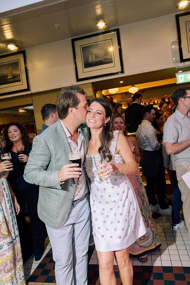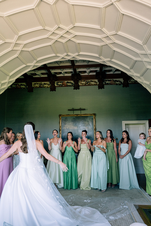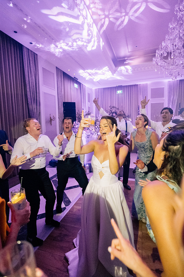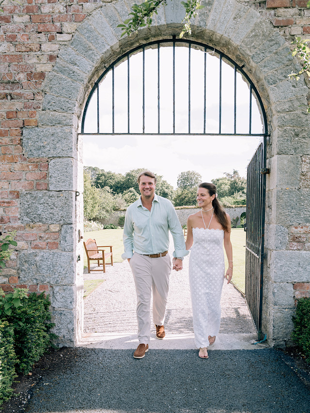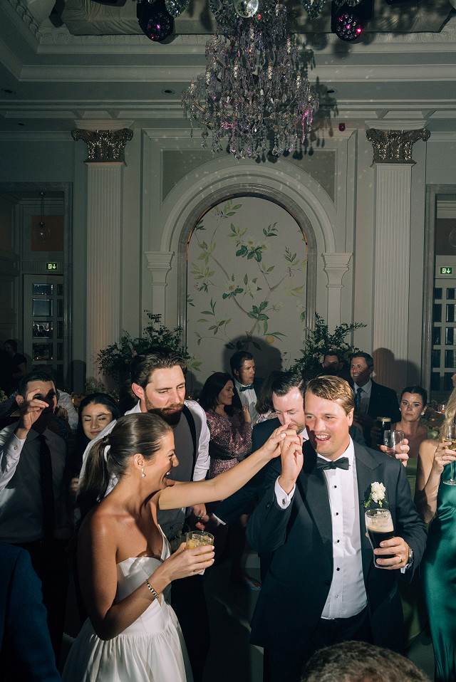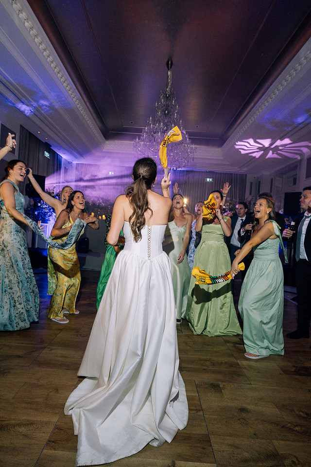 From there, guests moved to a cocktail hour that flowed outdoors under a tent from Eventus Marquees with a custom bar facade for guests to mingle at. They enjoyed string music from D-Entertainment. The bride and groom were able to enjoy a drink with guests as they surveyed the space. They had an indoor reception in the Manor's ballroom. This space featured grandious gold chandeliers, lush green and white floral arrangements from The Garden, custom artwork & stationery from Alison Pennline Designs, green printed linens, and taper candles. The setting was both romantic and timeless with a botanical theme. Beautiful rental pieces helped make up the design and space from Maison Margaux Ltd., Cater Hire Limerick, Total Event Rental. Elan Artists provided live entertainment for guests as they enjoyed their meal. The Cairde Dancers gave guests a show of traditional Irish dancing as the night went on. After the show, once the cake by MM Cookies was cut, the real fun began! Guests flooded the dance floor as Gordon Johnson, Natalie Sax, and Gretakro kept the music flowing and energy high. The after party flowed onto the outdoor terrace for more drinks and pizza. Neon lights from Gorilla Design Ltd. illuminated the space as guests danced on their custom floor with the newlyweds. This weekend was full of rich tradition, fun activities, beautiful designs, and love from all sides. I am grateful to have captured it all!