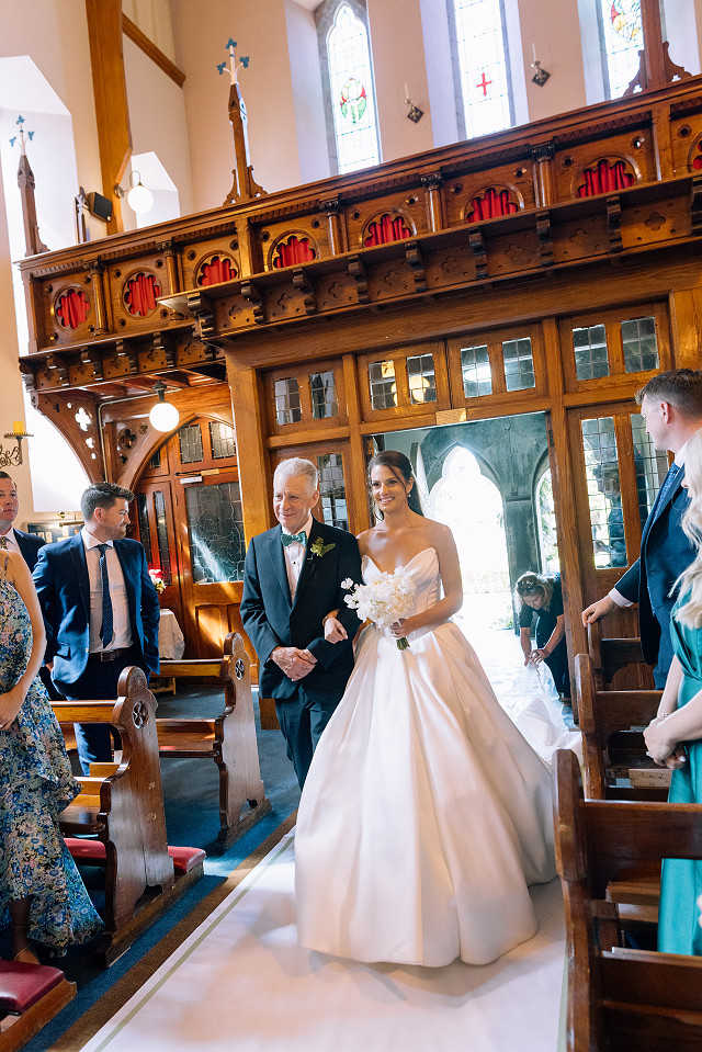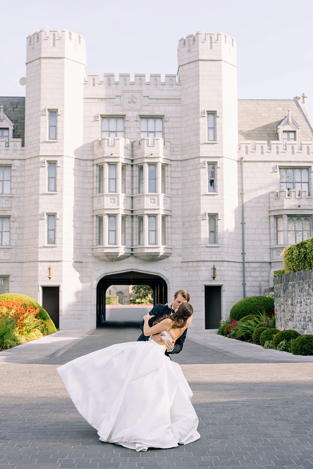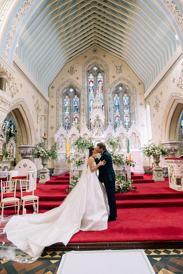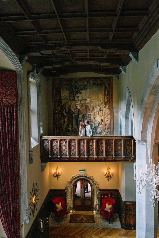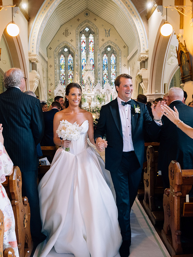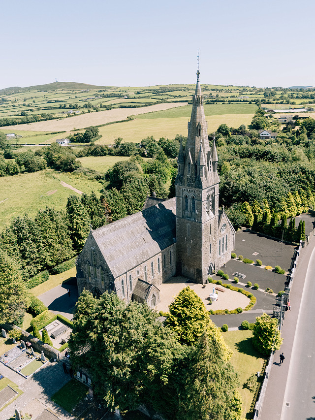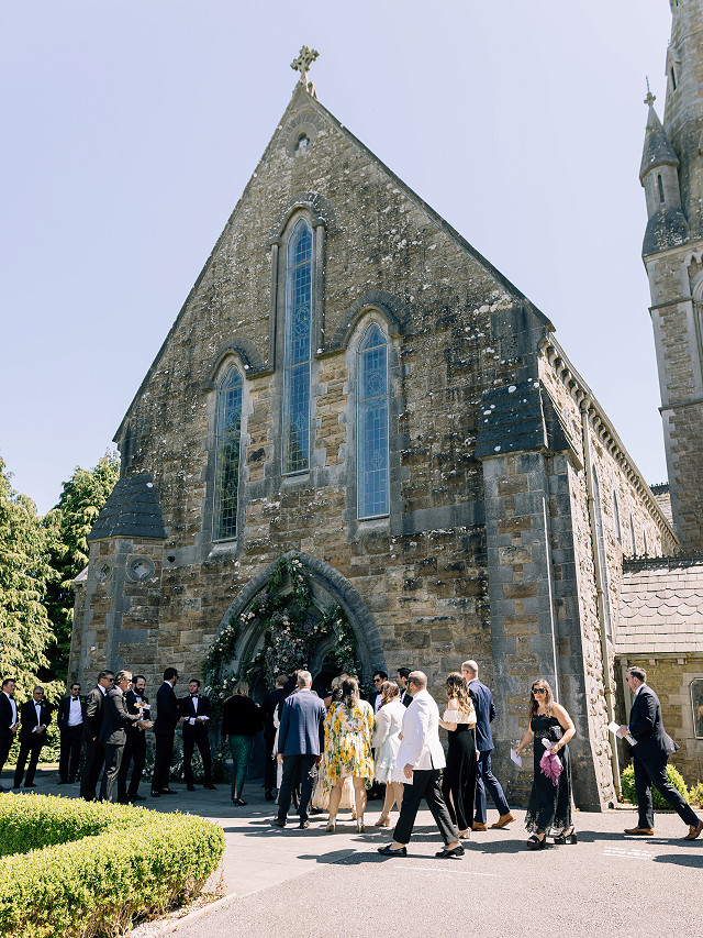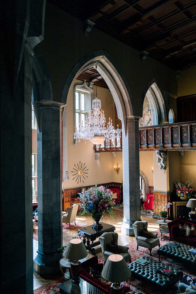 Tara Fay Events planned a beautiful Irish destination wedding at Adare Manor, with the help of Silver Thorn Productions and Laura McGinn. Guests gathered from near and far to celebrate our couple's love story, as it unfolded in the Adare Manor. Eric Kelley and Current Films expertly captured each moment from the weekend. The festivities kicked off with golf and tea, a rowdy pub night, an intimate family dinner, and stunning rehearsal dinner at the Manor. The bride and her maids got ready with the help of David Cashman, Sue Brophy, and Shivvy Roche as she prepared to meet her groom. The guys got ready at the Manor as they slipped into their suits. They met for a first look outside of the Manor prior to the ceremony. Guests gathered at an old historial stone church for a traditional-style wedding ceremony. The church featured stunning stained glass windows as the backdrop to their vows with wooden beams and pews lining the aisle. They said 'I do' surrounded by loved ones at the front altar with Meav Music providing the perfect cereomony soundtrack.