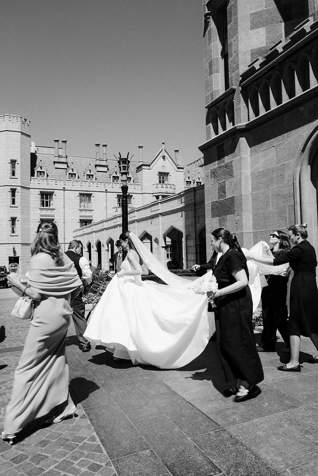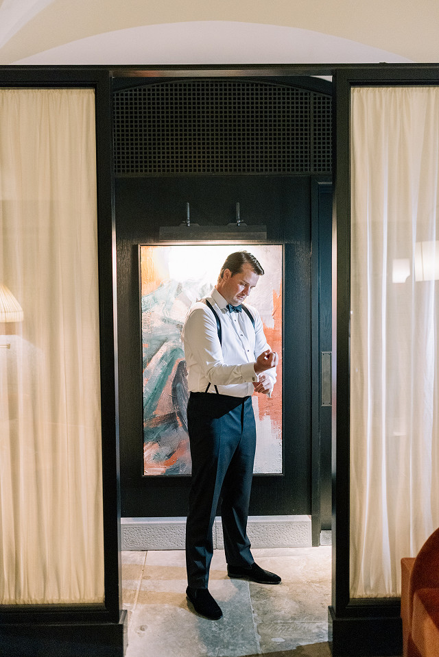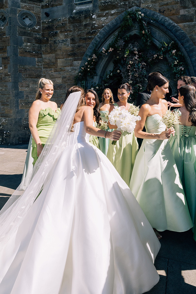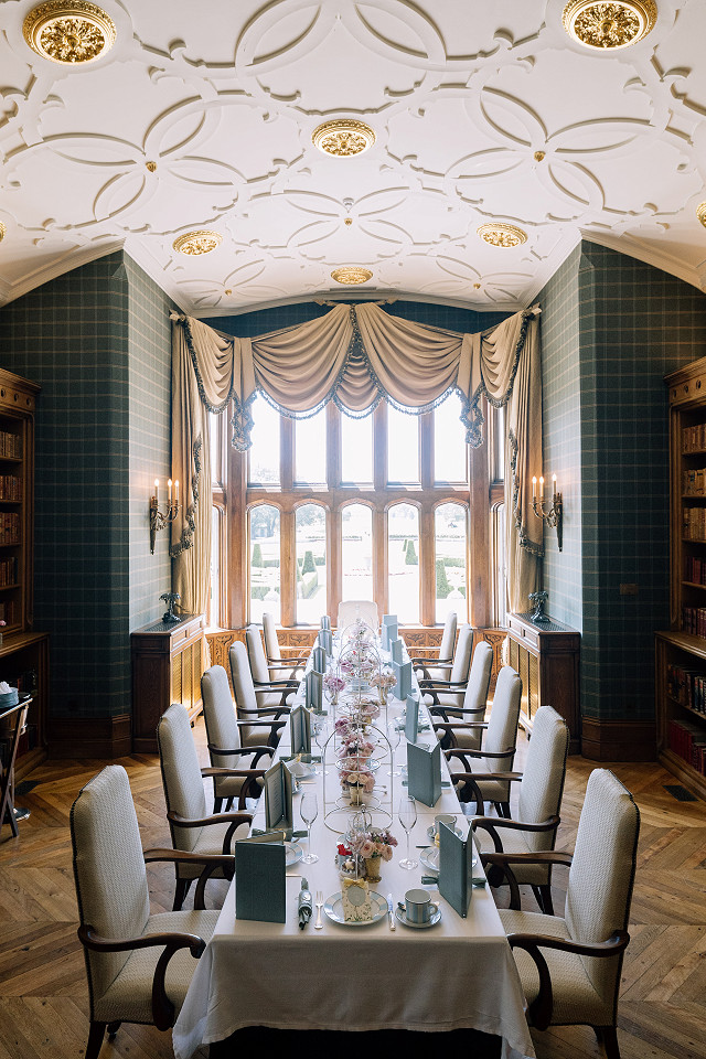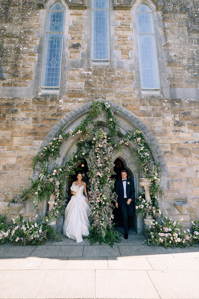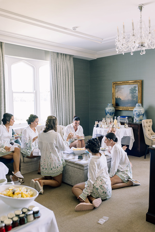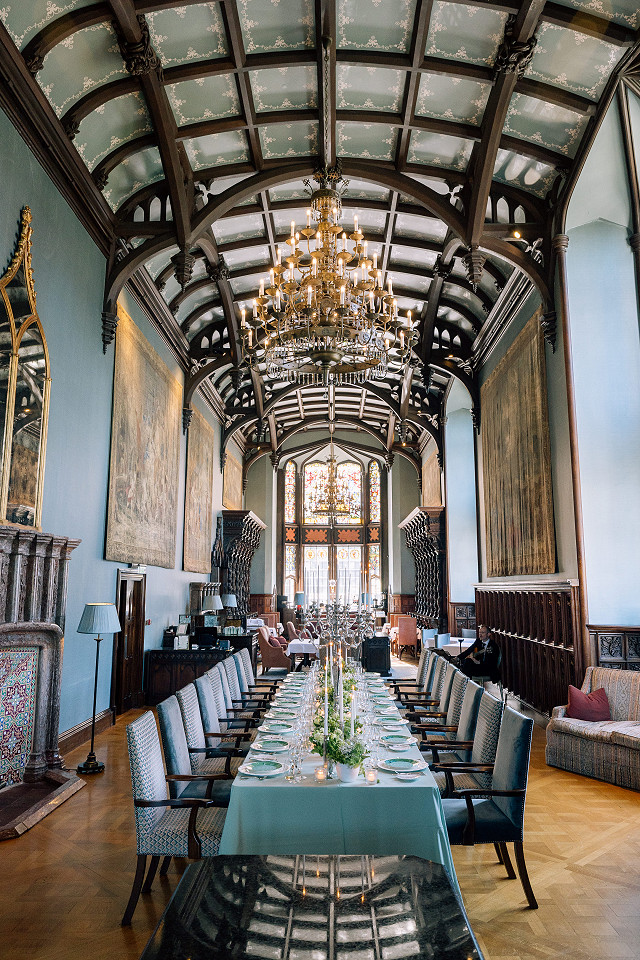 Tara Fay Events planned a beautiful Irish destination wedding at Adare Manor, with the help of Silver Thorn Productions and Laura McGinn. Guests gathered from near and far to celebrate our couple's love story, as it unfolded in the Adare Manor. Eric Kelley and Current Films expertly captured each moment from the weekend. The festivities kicked off with golf and tea, a rowdy pub night, an intimate family dinner, and stunning rehearsal dinner at the Manor. The bride and her maids got ready with the help of David Cashman, Sue Brophy, and Shivvy Roche as she prepared to meet her groom. The guys got ready at the Manor as they slipped into their suits. They met for a first look outside of the Manor prior to the ceremony. Guests gathered at an old historial stone church for a traditional-style wedding ceremony. The church featured stunning stained glass windows as the backdrop to their vows with wooden beams and pews lining the aisle. They said 'I do' surrounded by loved ones at the front altar with Meav Music providing the perfect cereomony soundtrack.